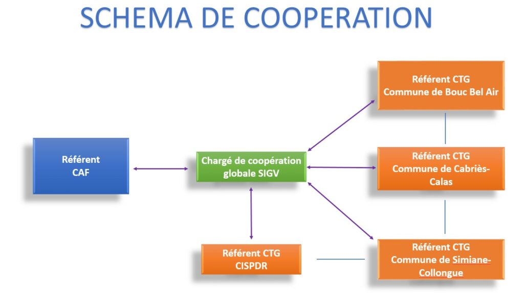 Le SIGV a été missionné officiellement par les villes fin 2022 pour coordonner le projet des actions inscrites dans la CTG une fois la convention validée et signée par l’ensemble des partenaires. La CTG co-contruite avec la CAF été signée par l’ensemble des partenaires en avril 2023. La coordination de cette convention, a été délégué au SIGV, au travers d’une personne référente « chargée de coopération territoriale globale /CTG » et co-financée par la CAF.